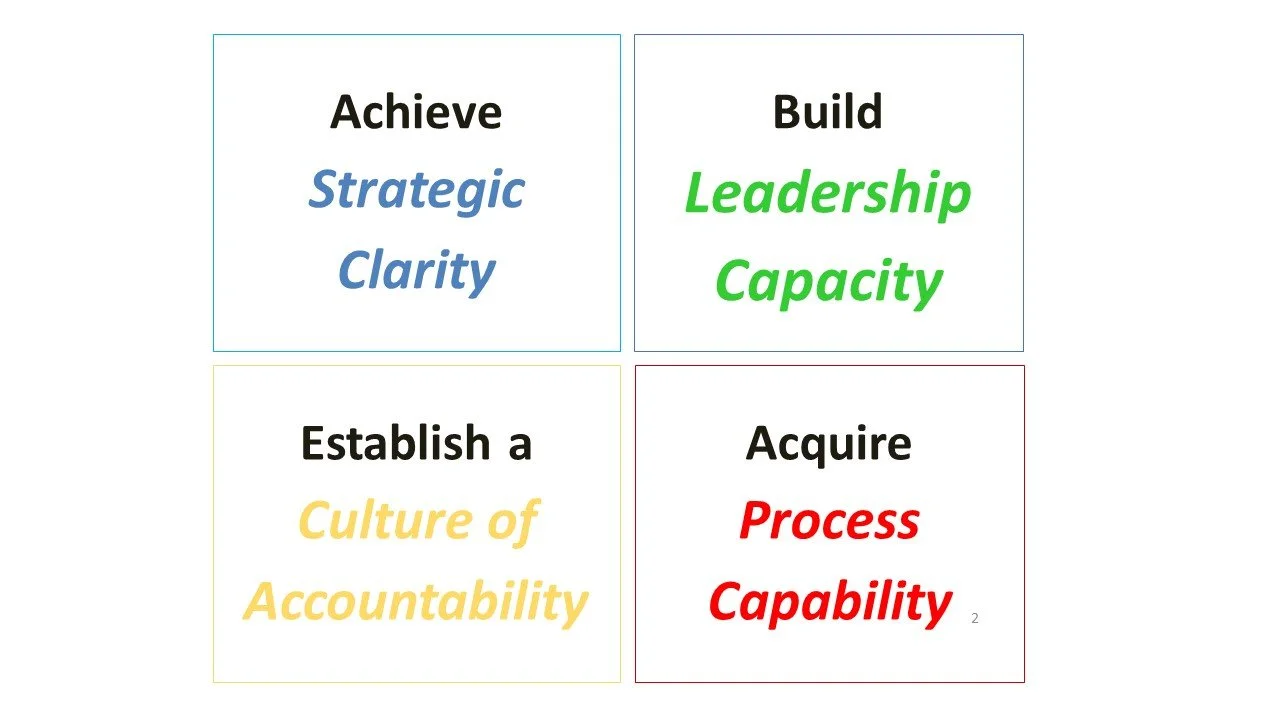 Research has proven, and our experience bears out, that stellar execution is a function of four essential elements as illustrated below: